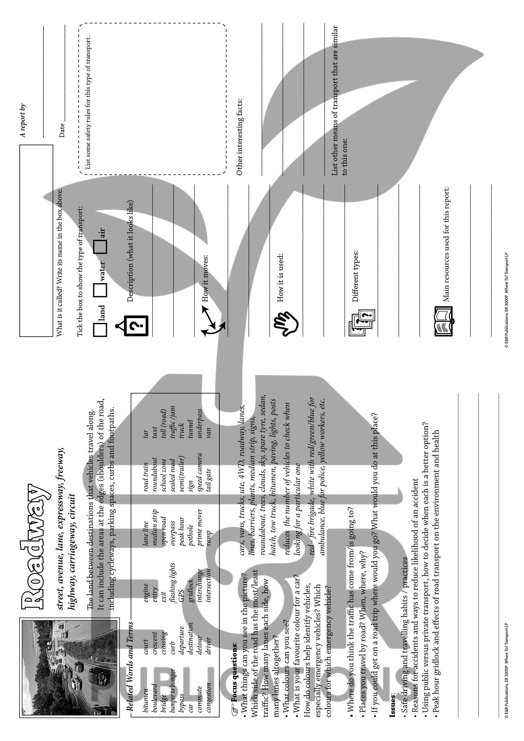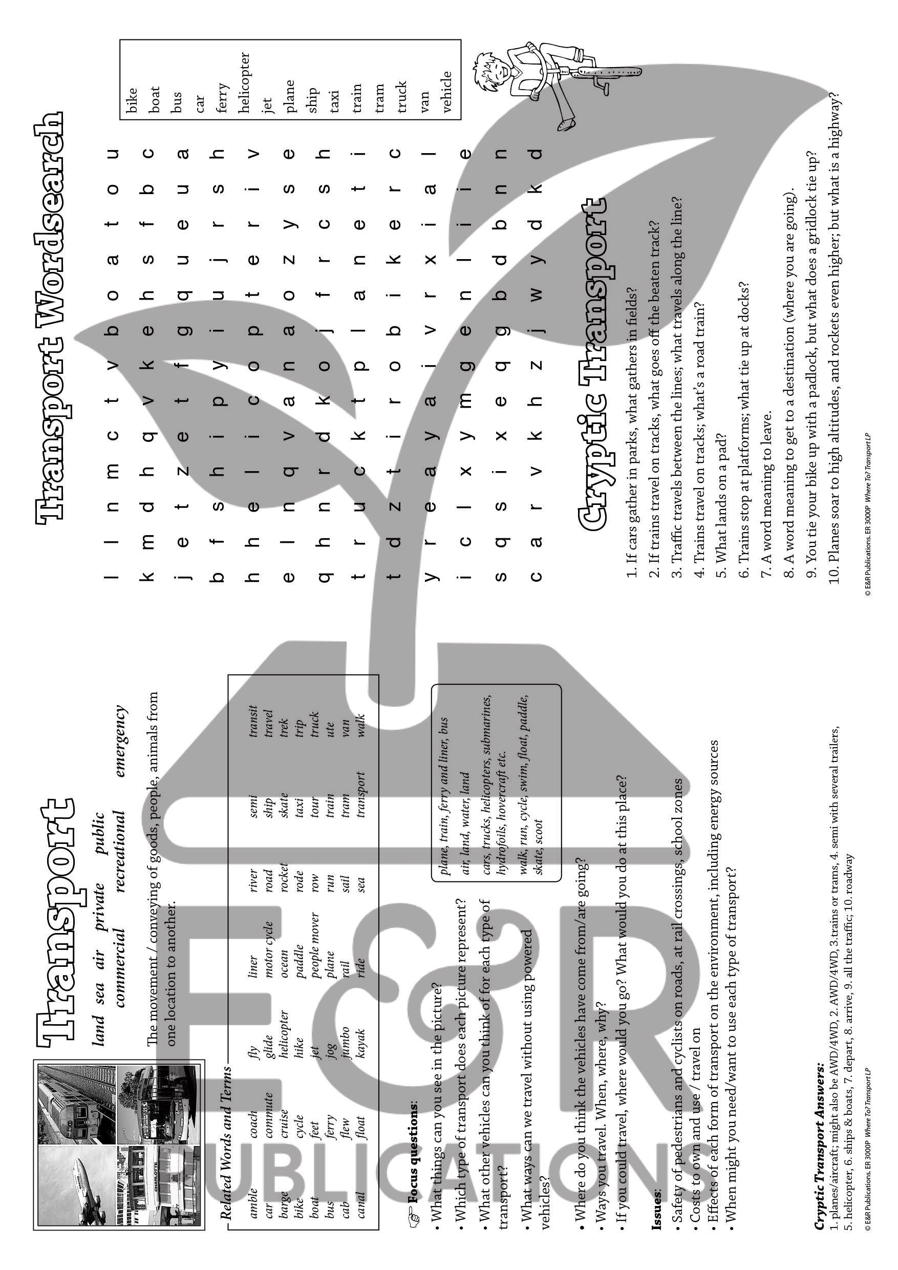 ER-3000A Transport activity book. Includes full-colour A4 posters x 6.
