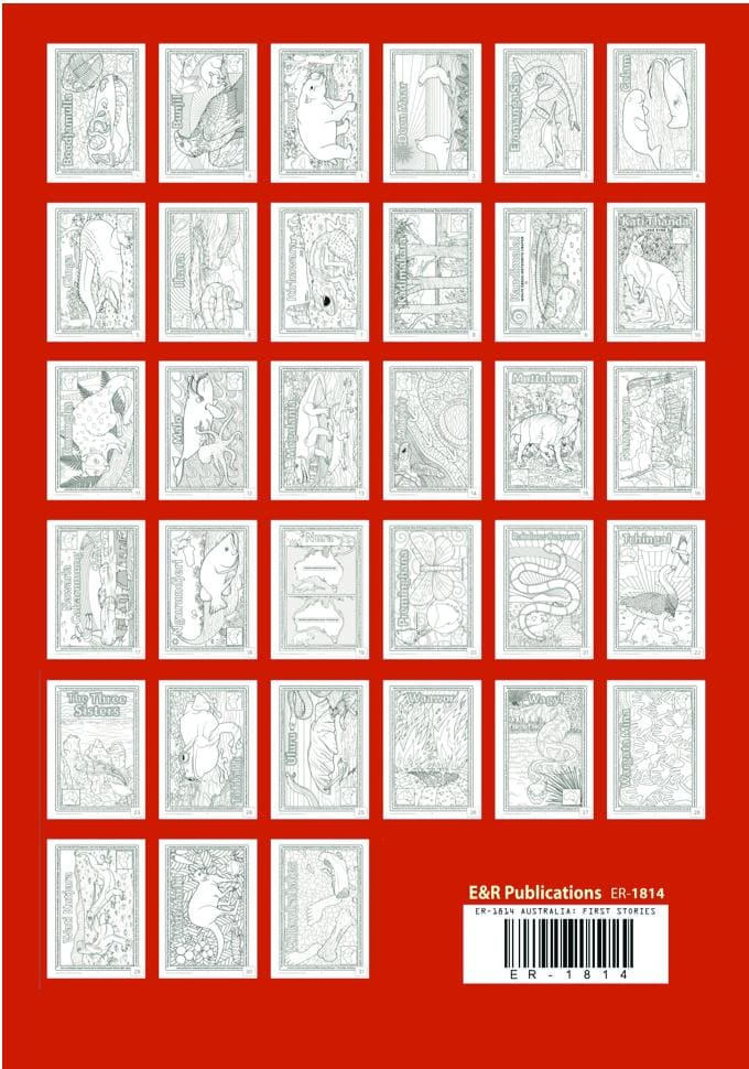Explore ancient stories of Australia from prehistoric times, to songlines and story tracks of the first peoples of this great land. Each picture has a traditional Aboriginal story paragraph in its border.