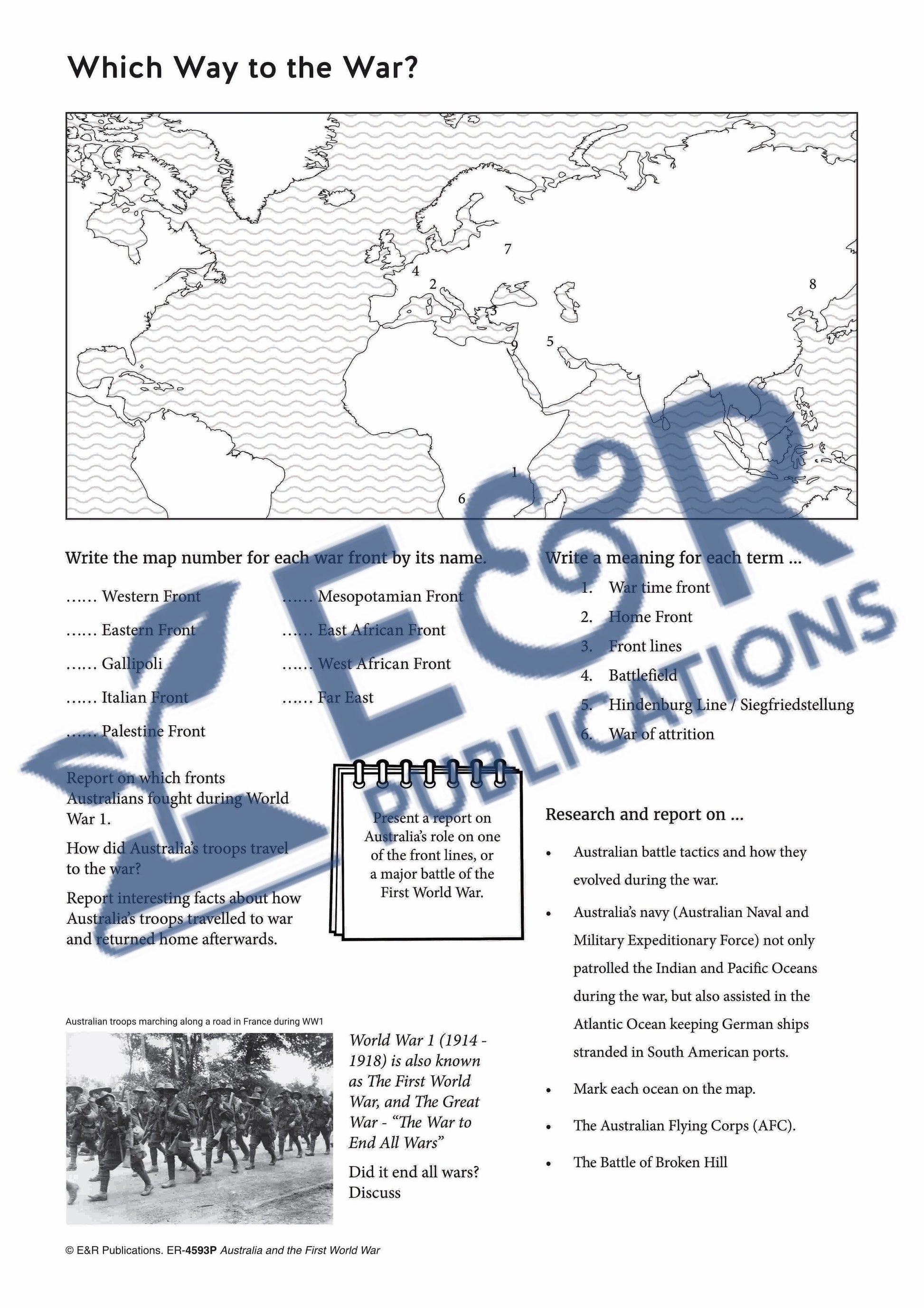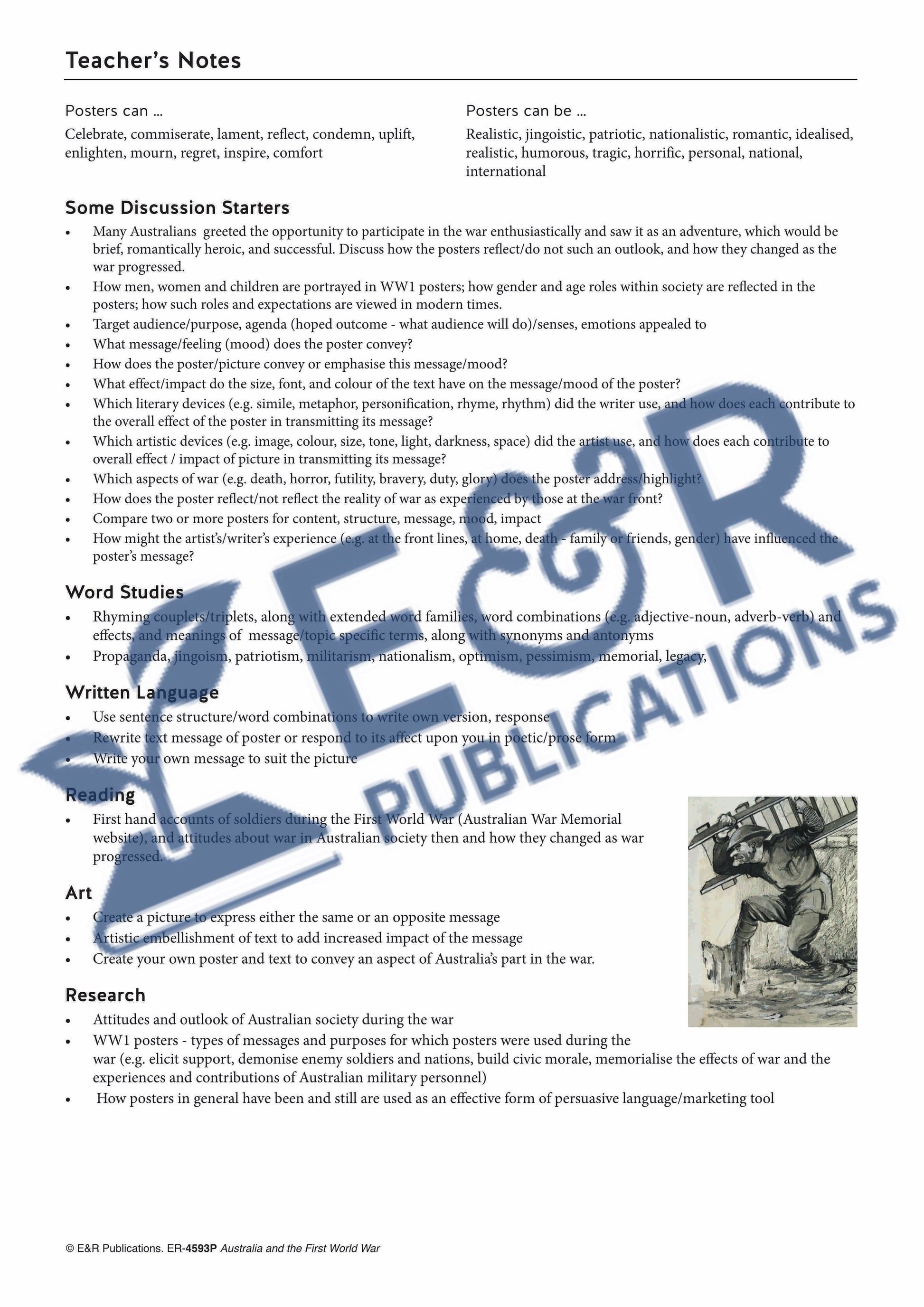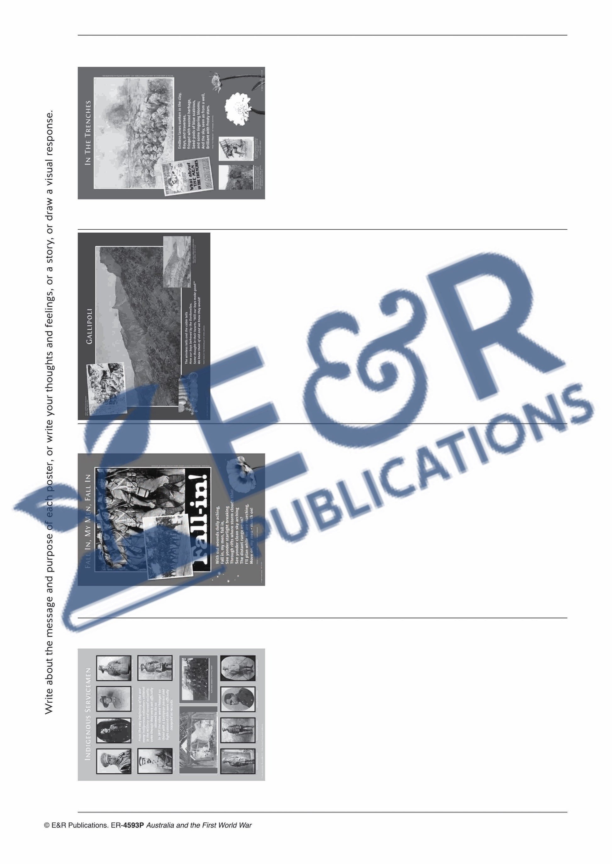8 x A3 World War 1 themed posters: showcasing the Australian Anzac contribution, including Australian poetry, plus 16 x A4 BLM activity pages.