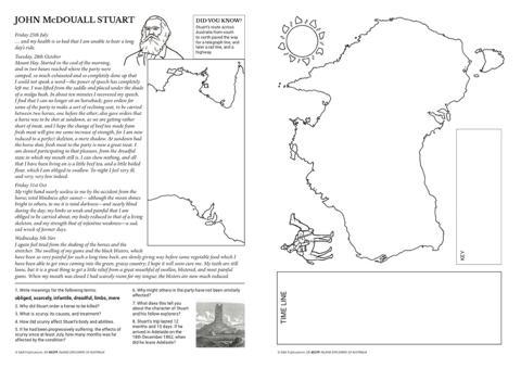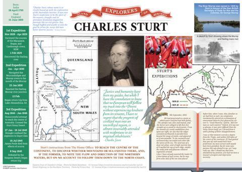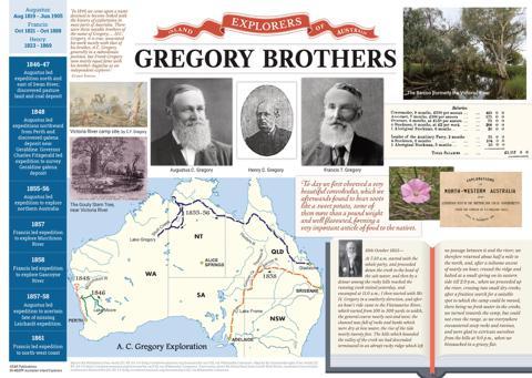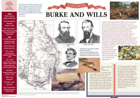 Includes Burke and Wills, John McDouall Stuart, Charles Sturt, the Gregory brothers, Edward Eyre, the Forrest brothers, Ernest Giles, and Ludwig Leichhardt. Each poster has 2 high-quality blackline master pages on the reverse side - 16 in total.